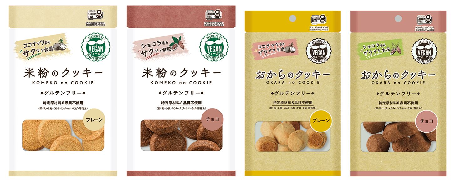 メロディアンの「米粉のクッキー」と「おからのクッキー」は、卵・乳・小麦を使わない、特定原材料8品目不使用の商品です。アレルギーでお悩みの方も、安心して召し上がっていただくことができます。もちろん、からだにやさしいスイーツをお探しの方にもおすすめです。