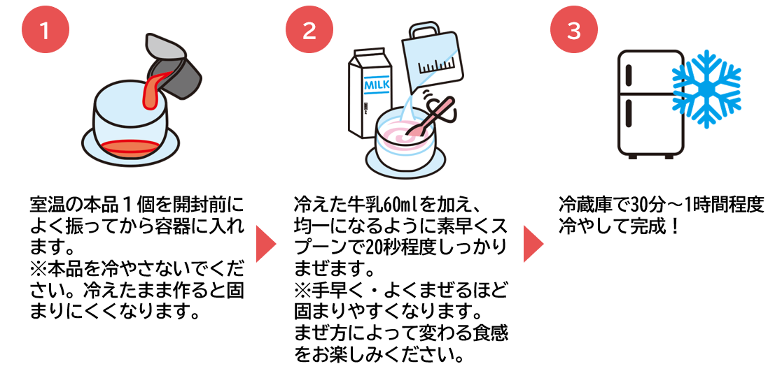 牛乳と混ぜるだけで、ぷるぷる食感のプチデザートが簡単に作れます。