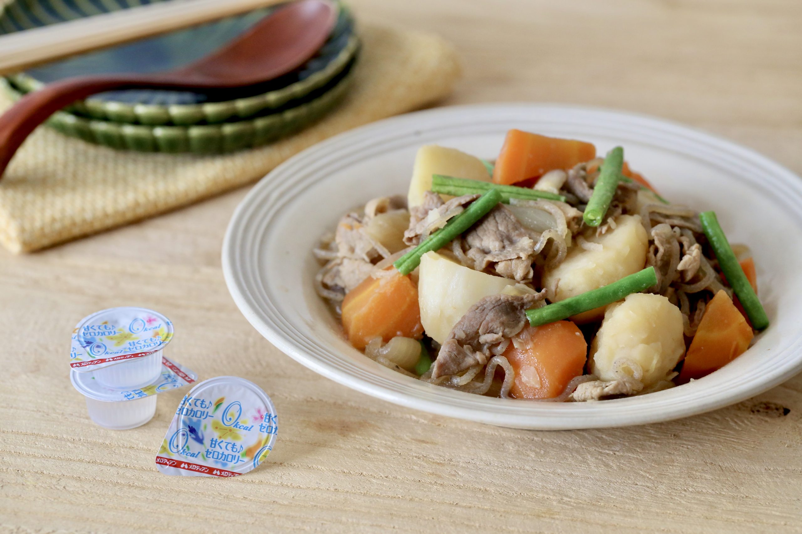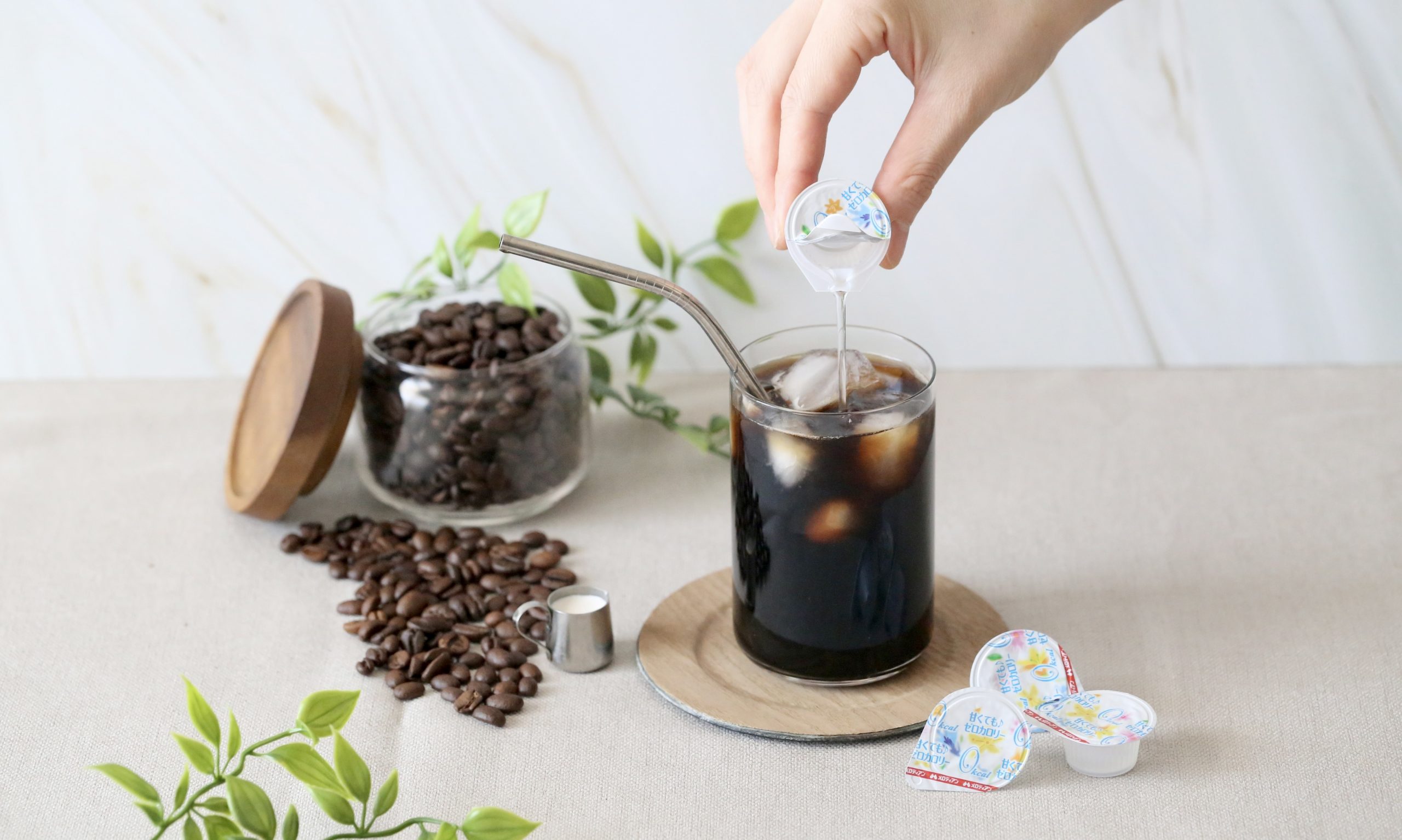 『ゼロカロリーシロップ』は、アイスコーヒーやアイスティーに入れるのはもちろん、肉じゃがや卵焼きなど料理で砂糖の代わりとしてもご使用いただけます。メロディアンのスペシャルサイトでは、メロディアン商品を使ったアレンジレシピを公開中です。ぜひご覧ください。