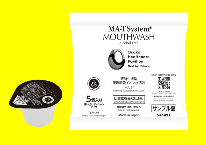 ★大阪・関西万博 大阪ヘルスケアパビリオンに出展中の「日本MA-T工業会」のブースにてMA-T System®マウスウォッシュポーションを配布(当社製造品)