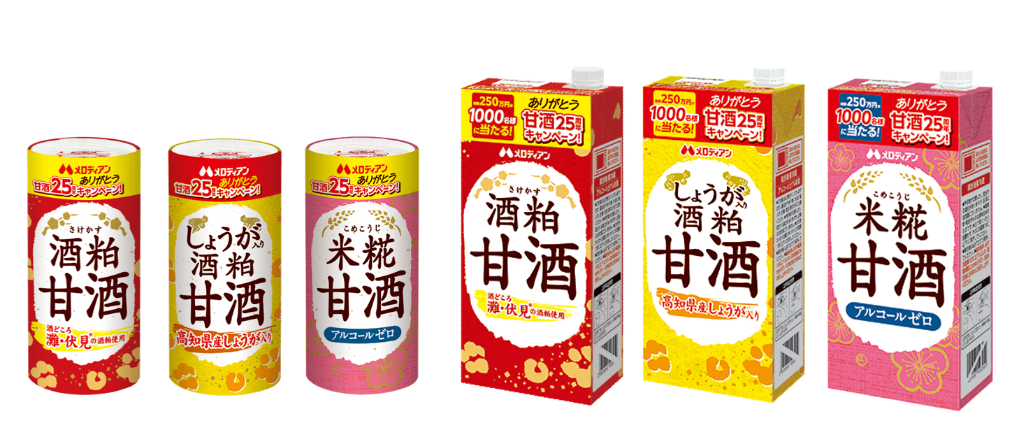 メロディアン株式会社は、発売25周年を迎える「甘酒」の長年のご愛顧に感謝を込めて、「ありがとう甘酒25周年キャンペーン」を2025年12月1日(月)より実施いたします。甘酒の需要期である冬にかけてキャンペーンを実施し、甘酒市場を盛り上げてまいります。