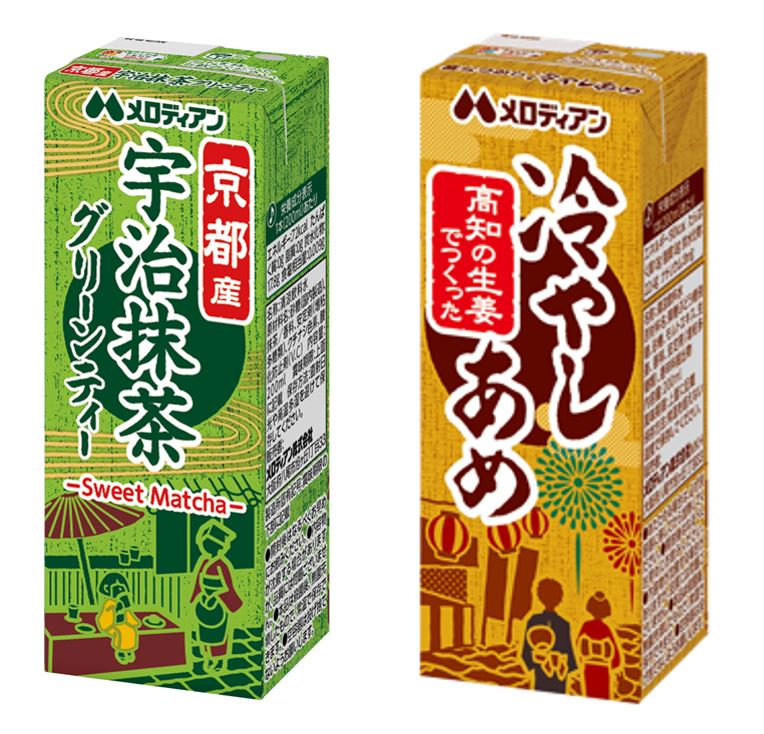 メロディアンでは、夏季限定商品として「宇治抹茶グリーンティー」、「冷やしあめ」を販売しております。どちらも、関西定番のご当地ドリンクを、飲みきりサイズで手軽にお楽しみいただける商品です。是非お試しください。