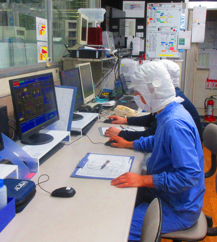 通过加热杀菌,达到完全无菌的状态。整个工序都由中央控制室的电脑进行管理,一旦发现异常现象就会立即停止运作,而且同时还有模拟监控,采用双重监控体制确保产品质量。